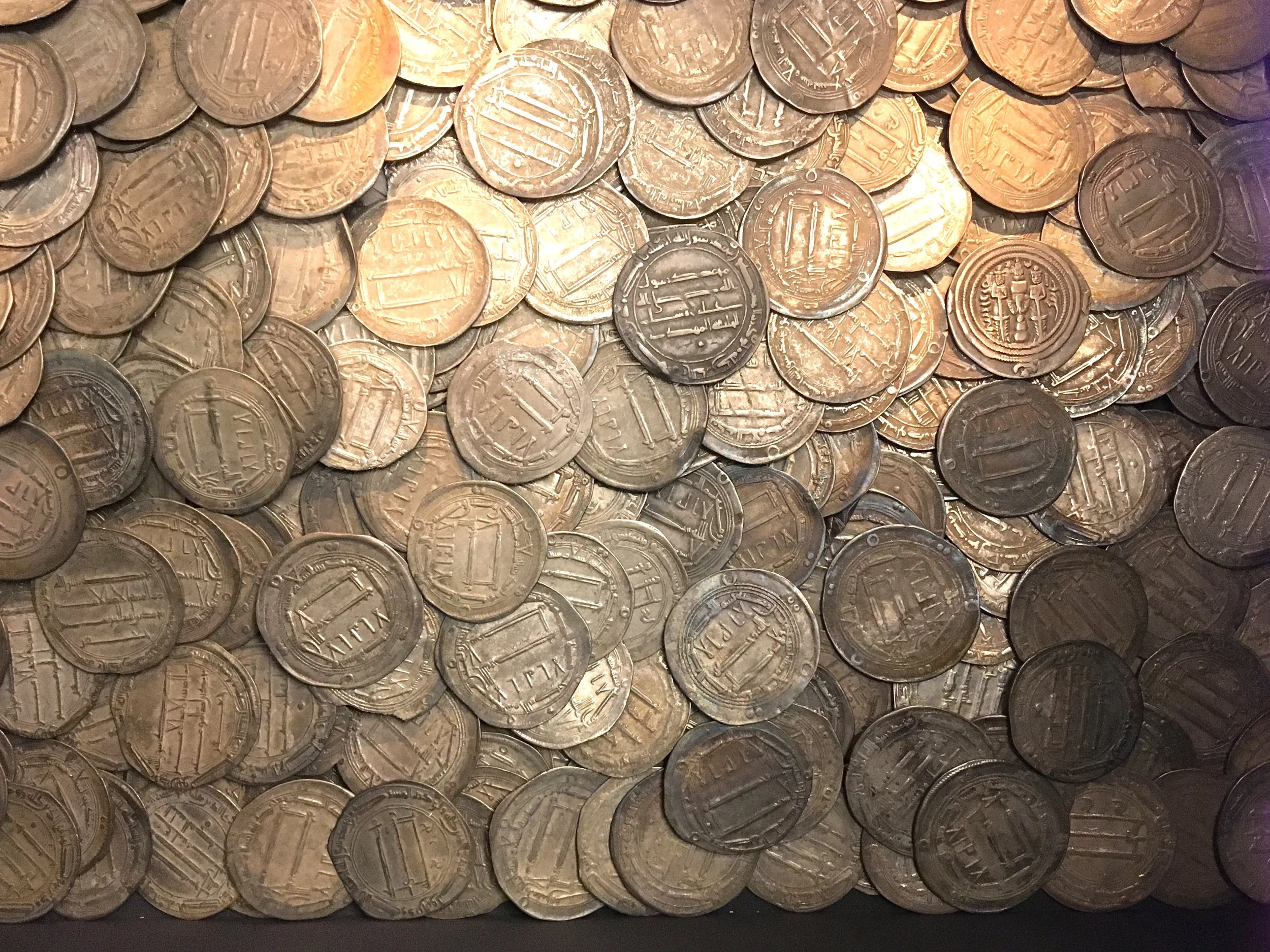 Figure 4: The “Babylon Hoard of Arabic Coins” (close-up) at the Bode-Museum, Berlin, Germany; Photo by Sara Ann Knutson, October 2021