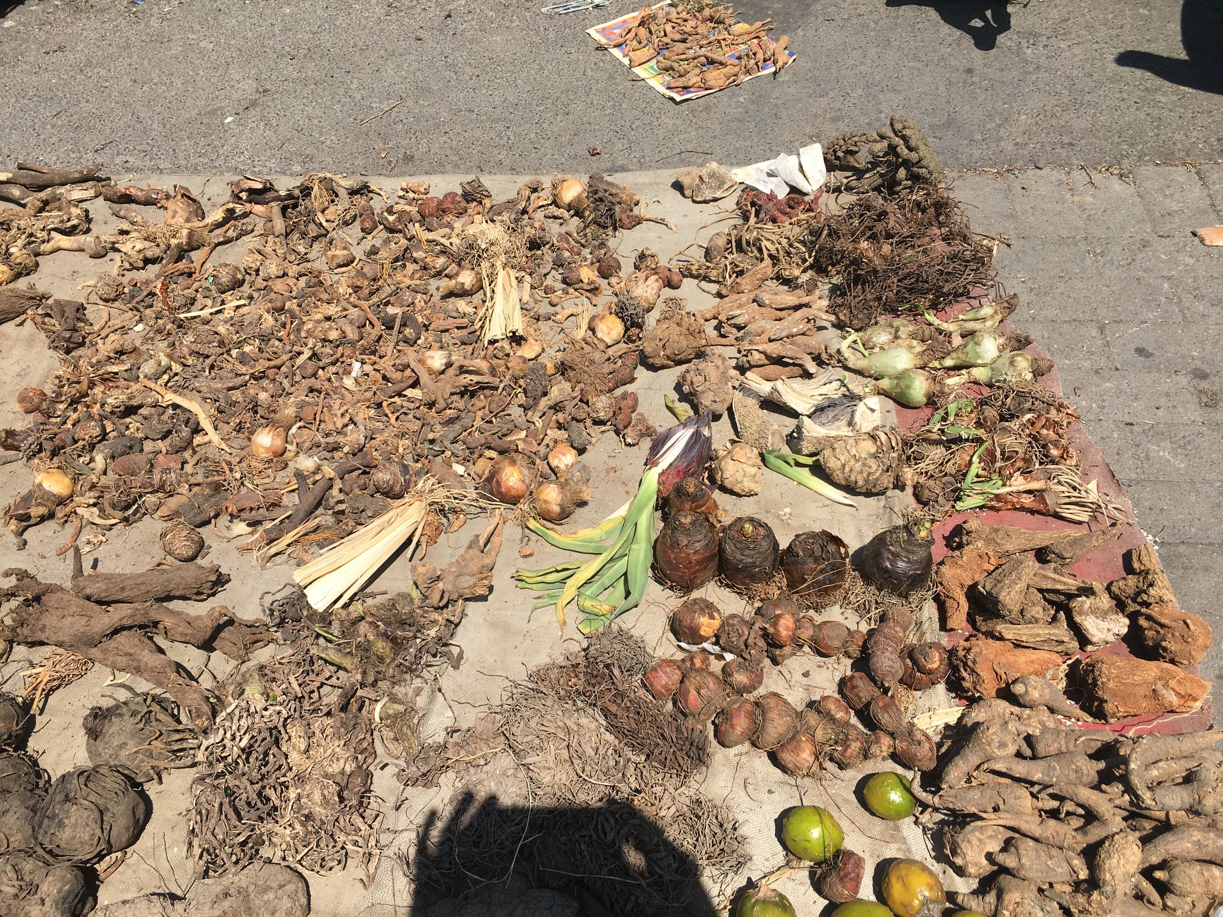 To describe those spaces, let us be guided by imphepu, whose biography, and that of other plants, may inform us on the local and global connections, historical and contemporary circulations of materials but also people and ideas. One can buy imphepu from the street vendors selling indigenous remedies – for which the generic term is muthi – in South African townships, such as Langa, or in various downtown neighborhoods such as Rondebosch and Observatory, in Cape Town, or at the markets such as Mai Mai or Faraday in Johannesburg. The presence of street muthi and plant vendors has been growing since the 1990s. During apartheid, it was spatially restricted. Therefore, at the time and from the 1930s onwards, muthi were available in the shop located downtown, often owned by Indian specialists familiar with Ayurveda (Flint 2015: 158-183). The case of Tina, an Indian woman to whom I was introduced by a Sotho sangoma and the president of Traditional Healer Organization (THO), Masecjuba is exemplary in this regard. Tina’s shop, Kwa Dabula, provides the vegetal substances and necessary equipment – animal skins, tails, horns, as well as beads and straw mats – to many traditional healers. Historically, such equipment and muthi were, and are still today, also on sale in township pharmacies, one of the oldest of which is located in Langa and in the hands of the same family for years, at least from 1940s, as I was told by the current owner[3].